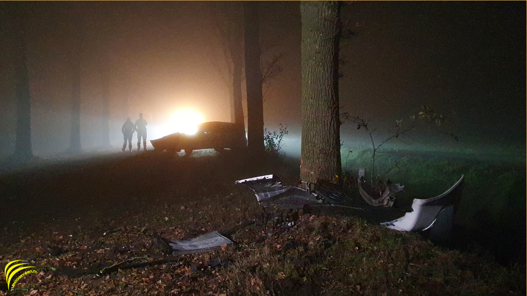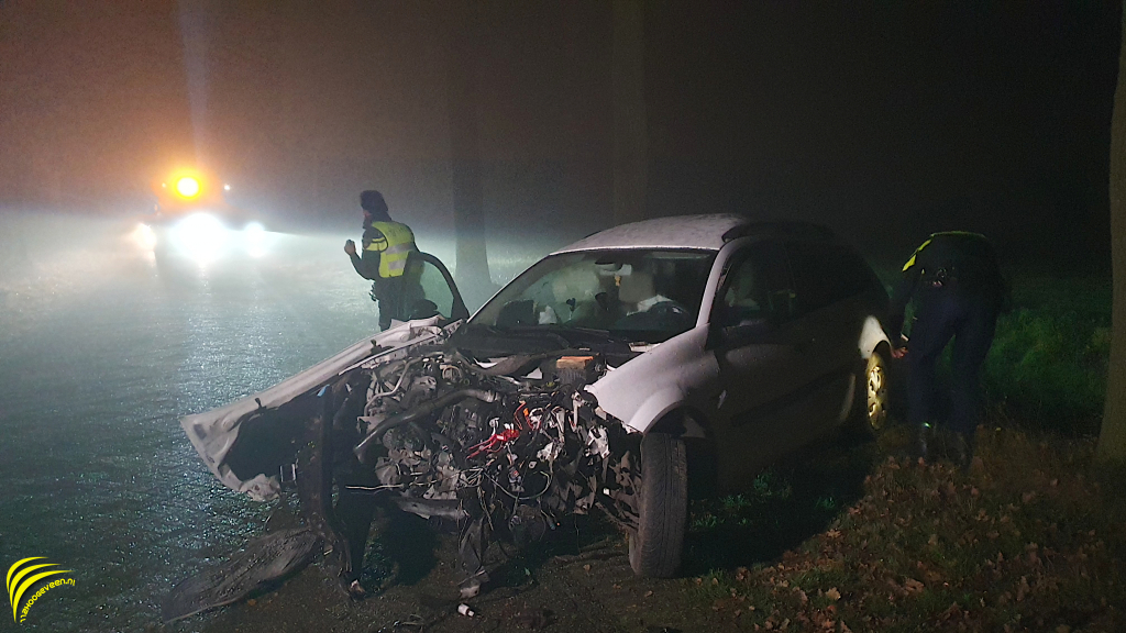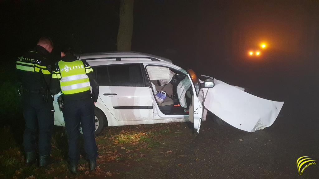 Op de Goringdijk is vanavond om half zeven een auto tegen een boom gebost.